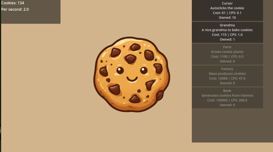 A game I made learning GODOT, a cookie clicker like with some basic upgrades
